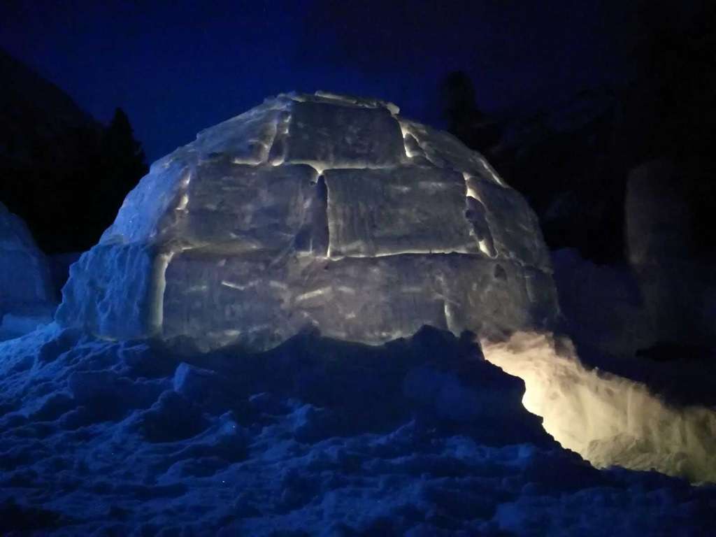 Unter fachkundiger Anleitung schneiden Sie Blöcke aus Schnee und bauen Ihr eigenes Iglu, um darin zu schlafen. Ein einfaches Picknick zum Mittagessen unterbricht die Bauphase, bevor dann die ersten Kuppeln aus Schnee fertiggestellt werden. Das Nachtessen in der Schneeküche «Marke Eigenbau» lädt zum Verweilen ein. Ein Iglu kann bereits mit einem Team ab 6 Personen gebaut werden und eignet sich bis maximal 30 Leuten.