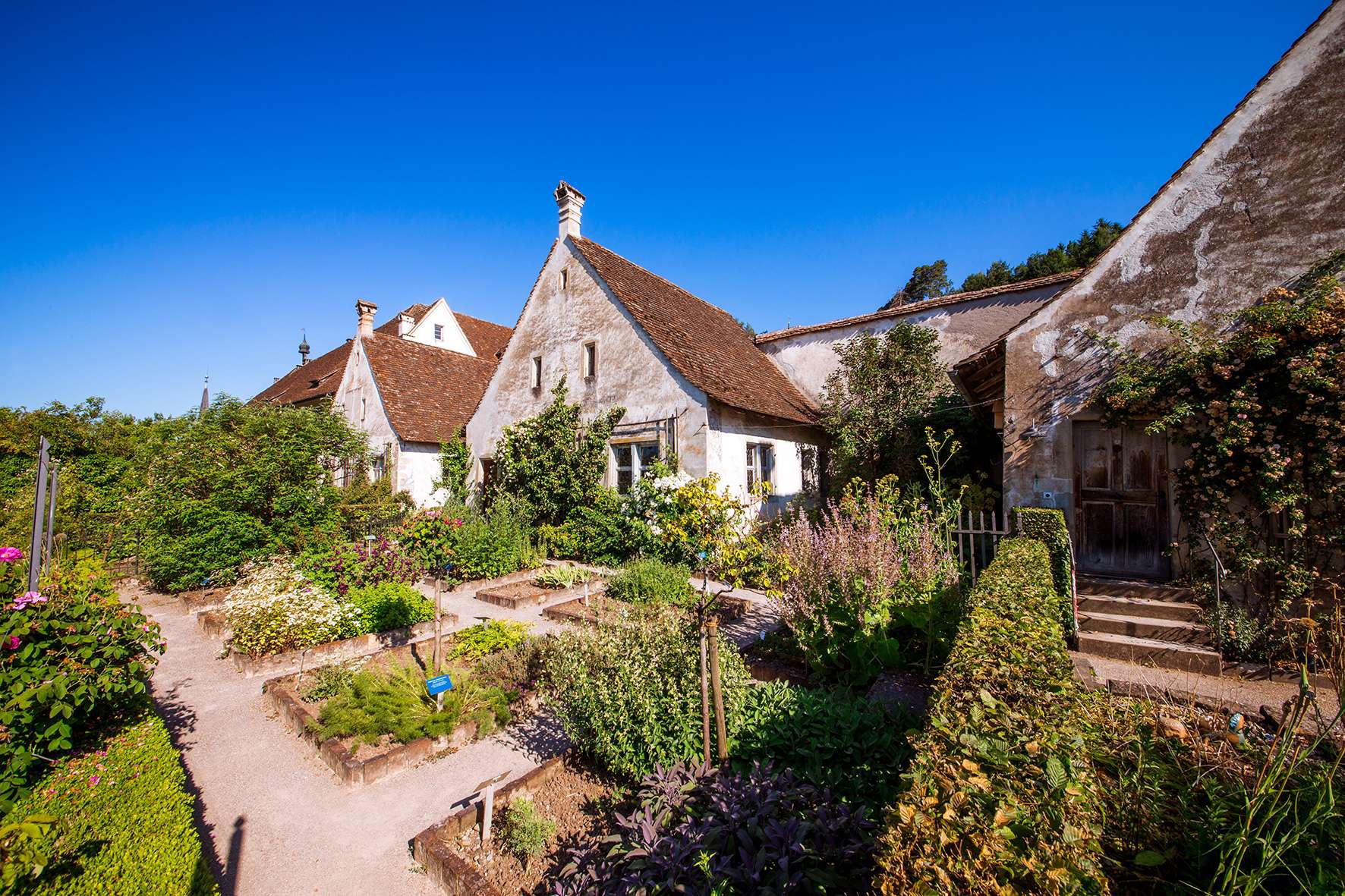Auch der Aussenraum ist vom mönchischen Leben geprägt, wie die Besucher auf vier Themenpfaden durch die Gärten der Kartause erfahren können. Wer mit offenen Augen durch die Anlage streift, stösst inmitten der heutigen Blütenpracht immer wieder auch auf Fragmente historischer Gartengestaltung.