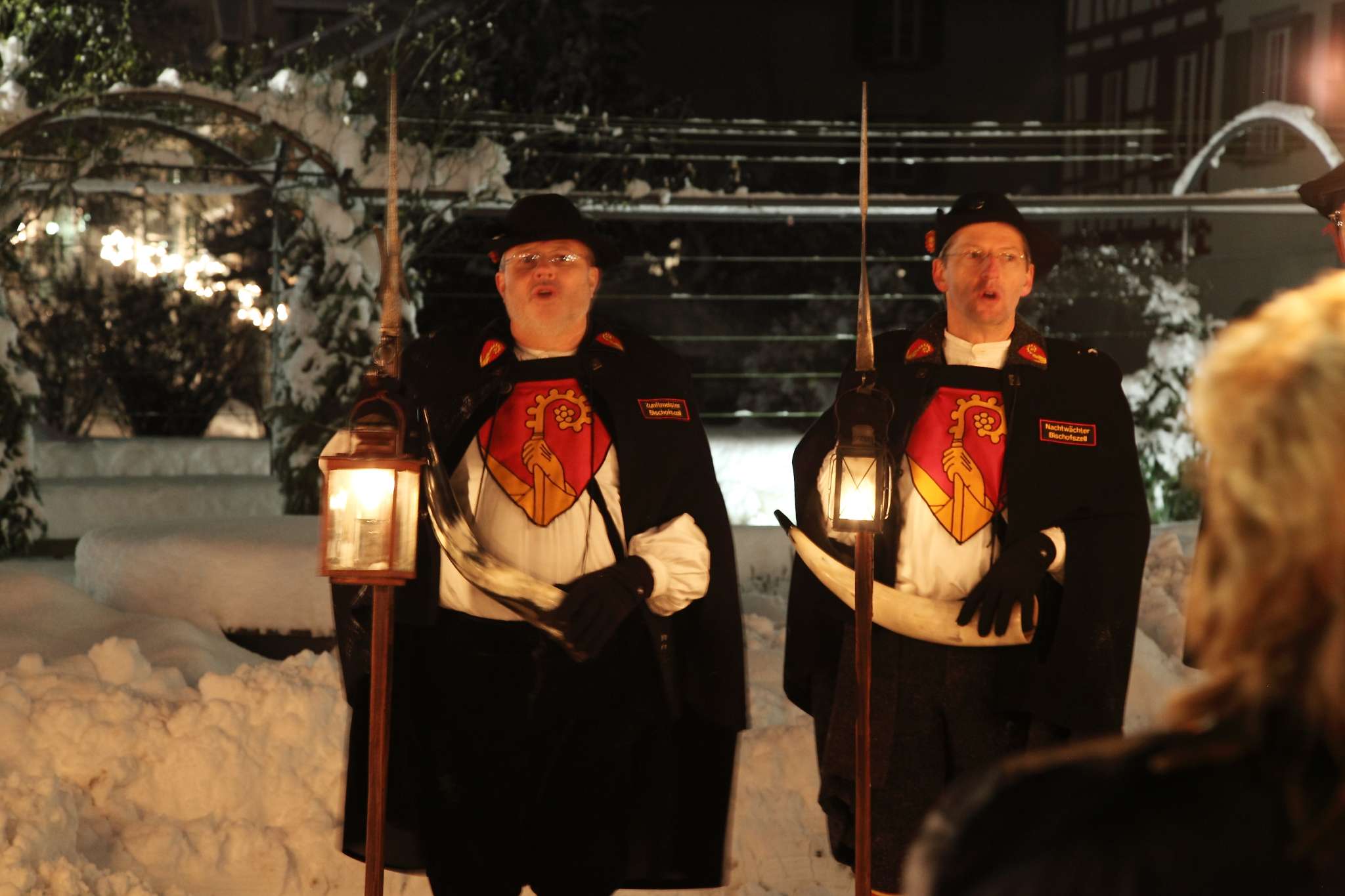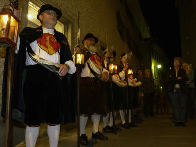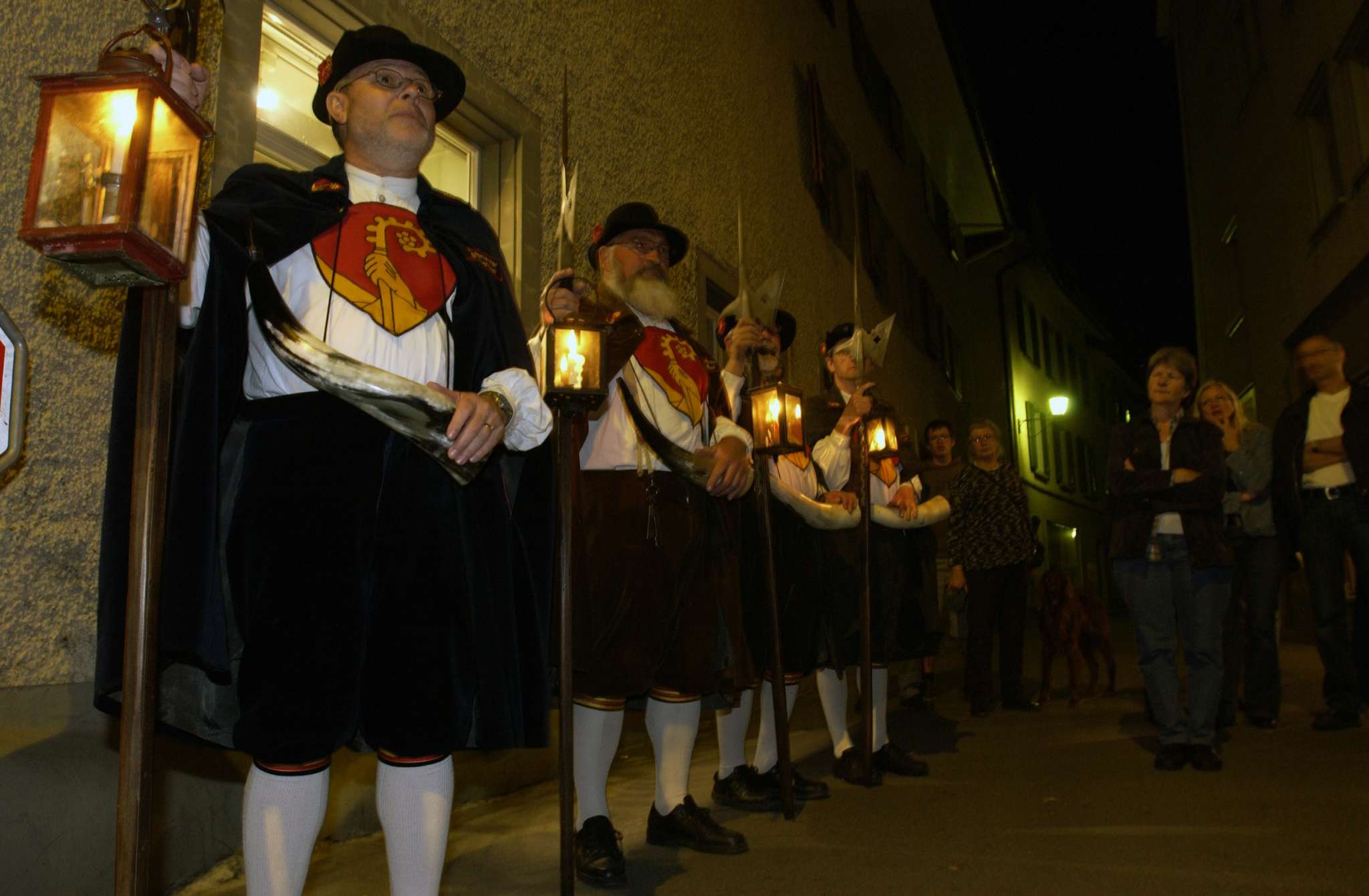 Wie in alten Tagen sind die Silhouetten der Nachtwächter auch heute noch in Bischofszell anzutreffen. Jeweils am Vorabend vor Neumond begeben sie sich auf der ursprünglichen Route durch die dunklen Gassen. Gruppen können einen eigen Rundgang reservieren und «Sagenumwobenes mit Gruselgeschichten» erfahren.