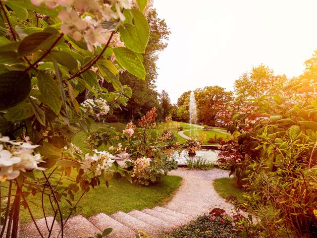 Die Arenenberger Gartenwelt lädt Besucher zur Zeitreise durch die Gartenbauepochen ein. Neben einem mittelalterlichen Patriziergarten und dem historischen Park mit Elementen aus Barock und Renaissance stehen hier auch die Felder, Gärten und Ställe des Schlossguts offen. Der klimafreundliche Milchviehstall, ein mobiler Hühnerstall, das Bienenhaus sowie Baum-, Schul- und Sortengärten zeigen die vielen Facetten von Landwirtschaft und Gartenkultur. Schon als Kaiserin Eugénie den Arenenberg dem Kanton Thurgau schenkte, war die Landwirtschaft nämlich fester Bestandteil des Anwesens.