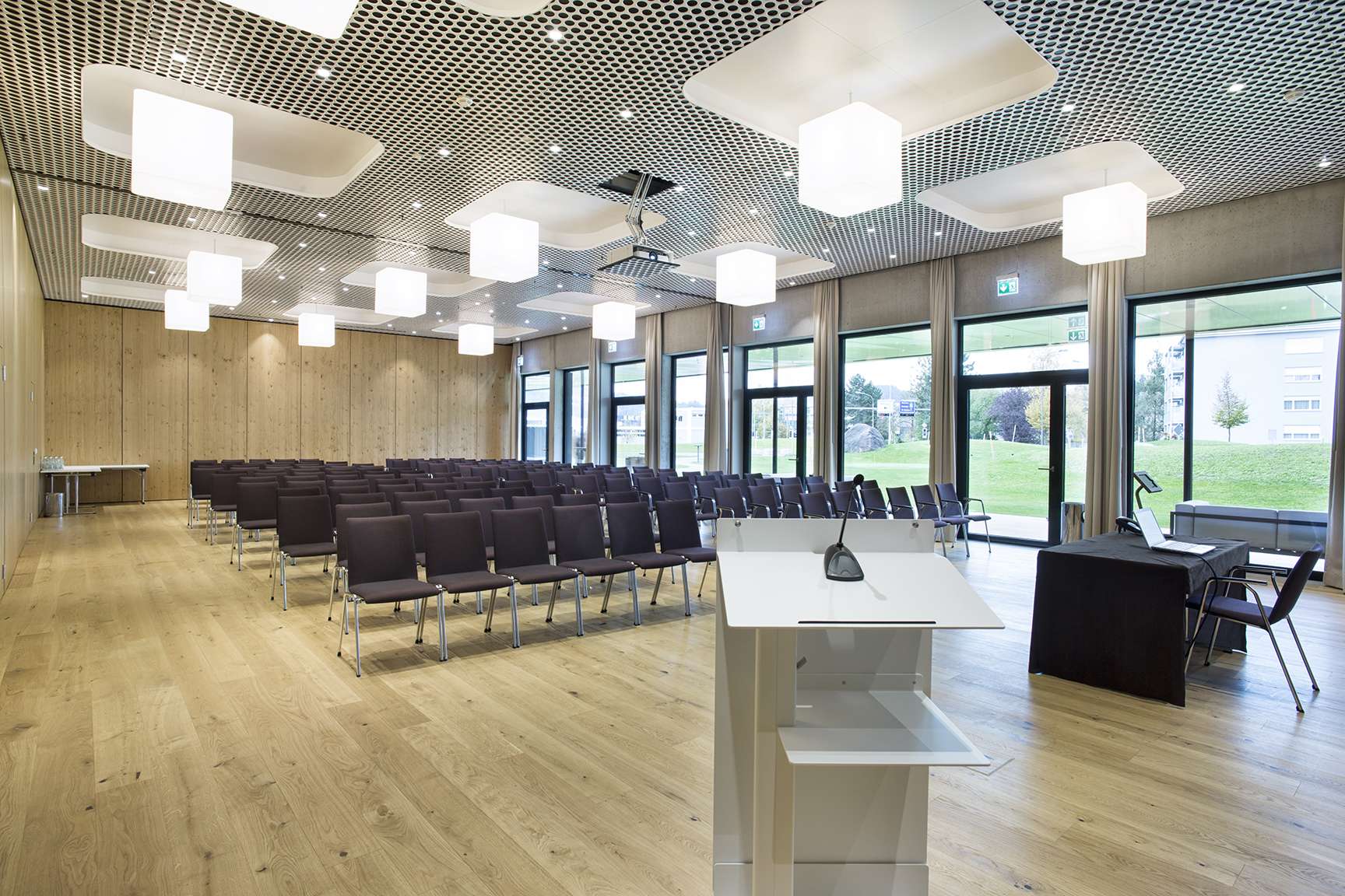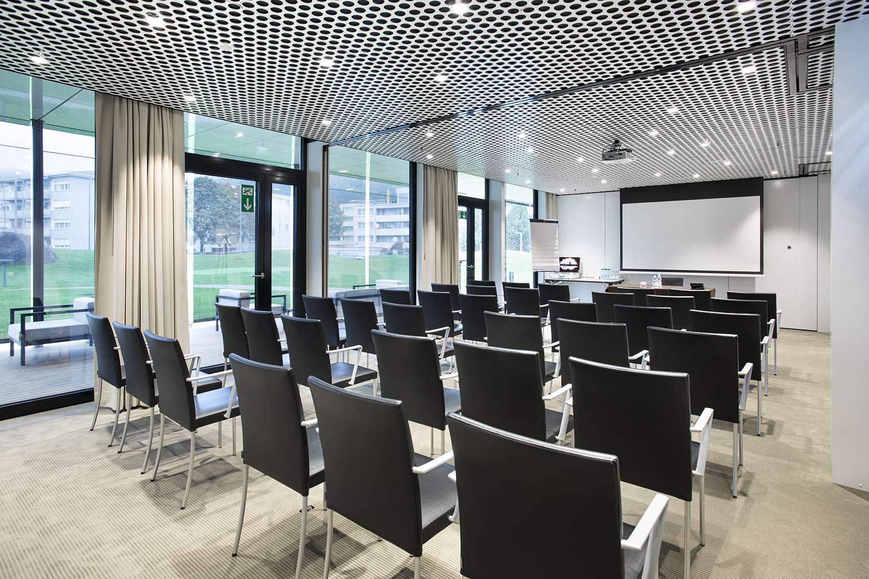Vom Firmenseminar über Konferenzen bis zu Kundenpräsentationen: Das Revier Hotel Säntispark bietet top Rahmenbedingungen für jeden Anlass. Auf einer Fläche von 637m2 bietet der Seminar- und Veranstaltungstrakt acht Räume, die flexibel gestaltbar sind und für jede Gruppengrösse genügend Platz bereithalten. Neben der neusten Seminartechnik und einer ausgezeichneten Infrastruktur haben die Gäste bei fünf Räumen direkten Zugang zum hoteleigenen Park. Ein Restaurant und die Loungebar bieten kulinarische Verpflegung. Erholung finden die Gäste in einem der 124 Zimmer oder in der Bäder- und Saunawelt des angrenzenden Freizeitzentrums.