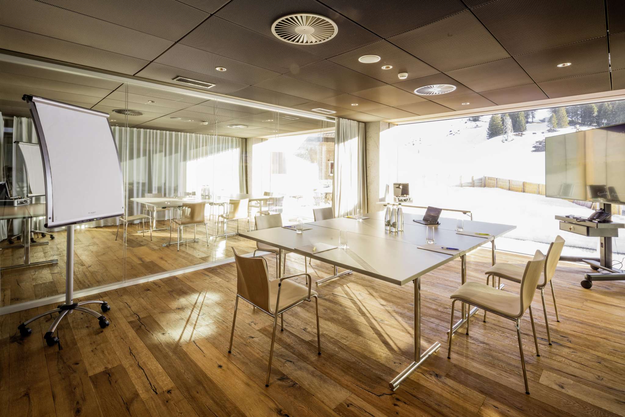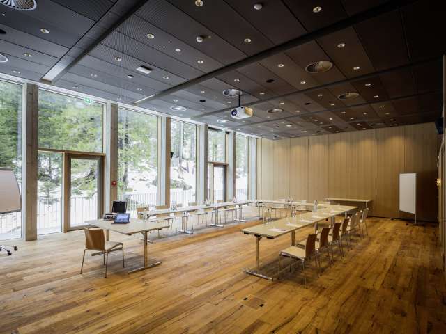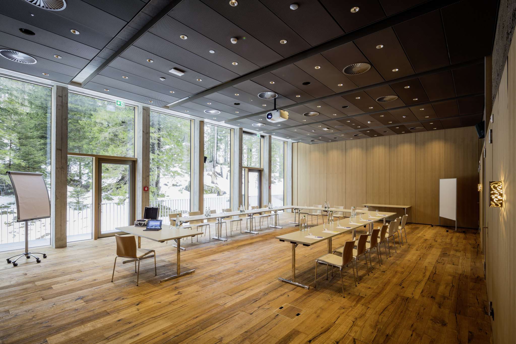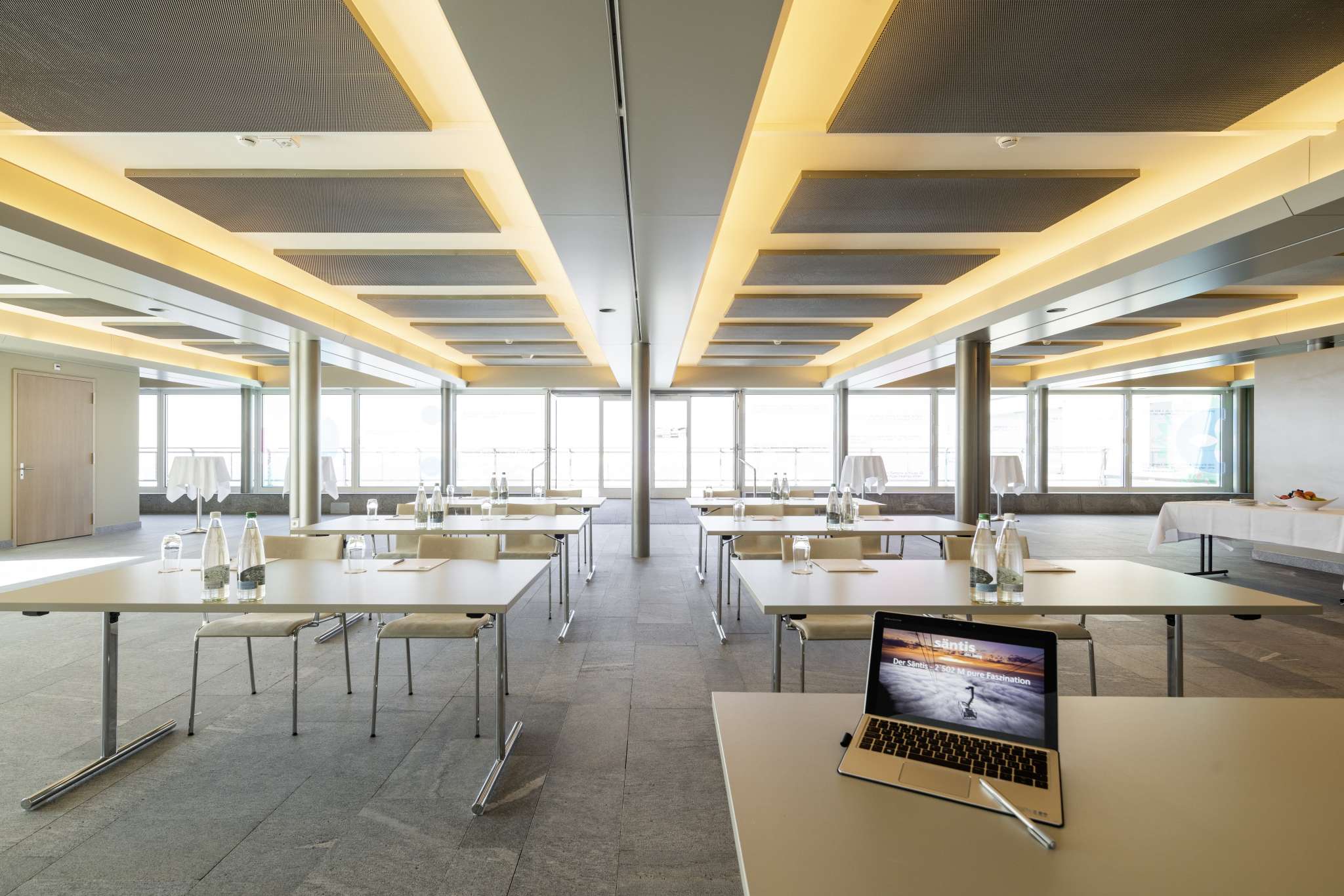 - Seminarräume am Gipfel («Churfirstenblick», Panorama‑Säli usw.) mit eigener Terrasse und atemberaubender Aussicht