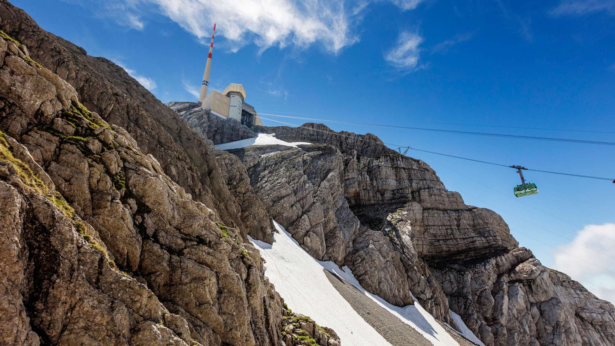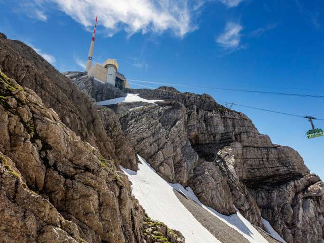 Der Säntis ist das Wahrzeichen der Ostschweiz. Von der Schwägalp erreicht man mit der modernen Schwebebahn den Gipfel des Säntis. Oben erstmals angekommen belohnt ein einmaliges Panorama über sechs Länder die 10-minütige Fahrt.