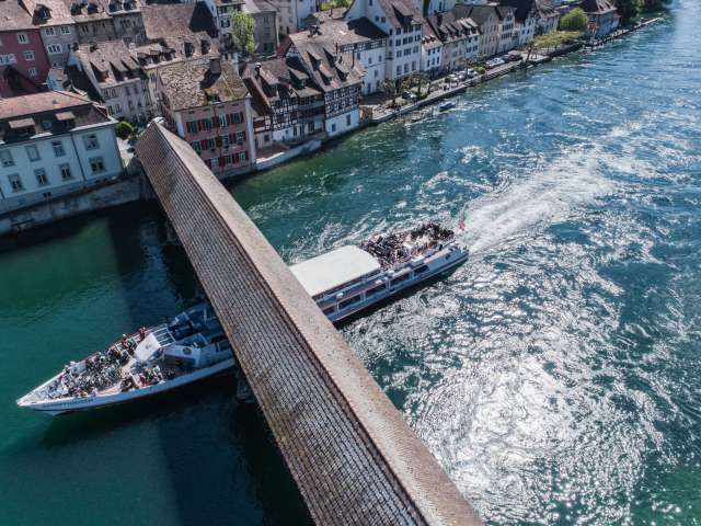 Die weisse Flotte der URh besteht aus sechs Flussschiffen: Vier grosse Einheiten werden im Kursverkehr eingesetzt. Die beiden kleineren Schiffe laufen vornehmlich zu Extrafahrten aus. Auch die Spezialangebote wie zum Beispiel Brunch- oder Fonduefahrten oder Schiff und Fisch sind ein Hit.