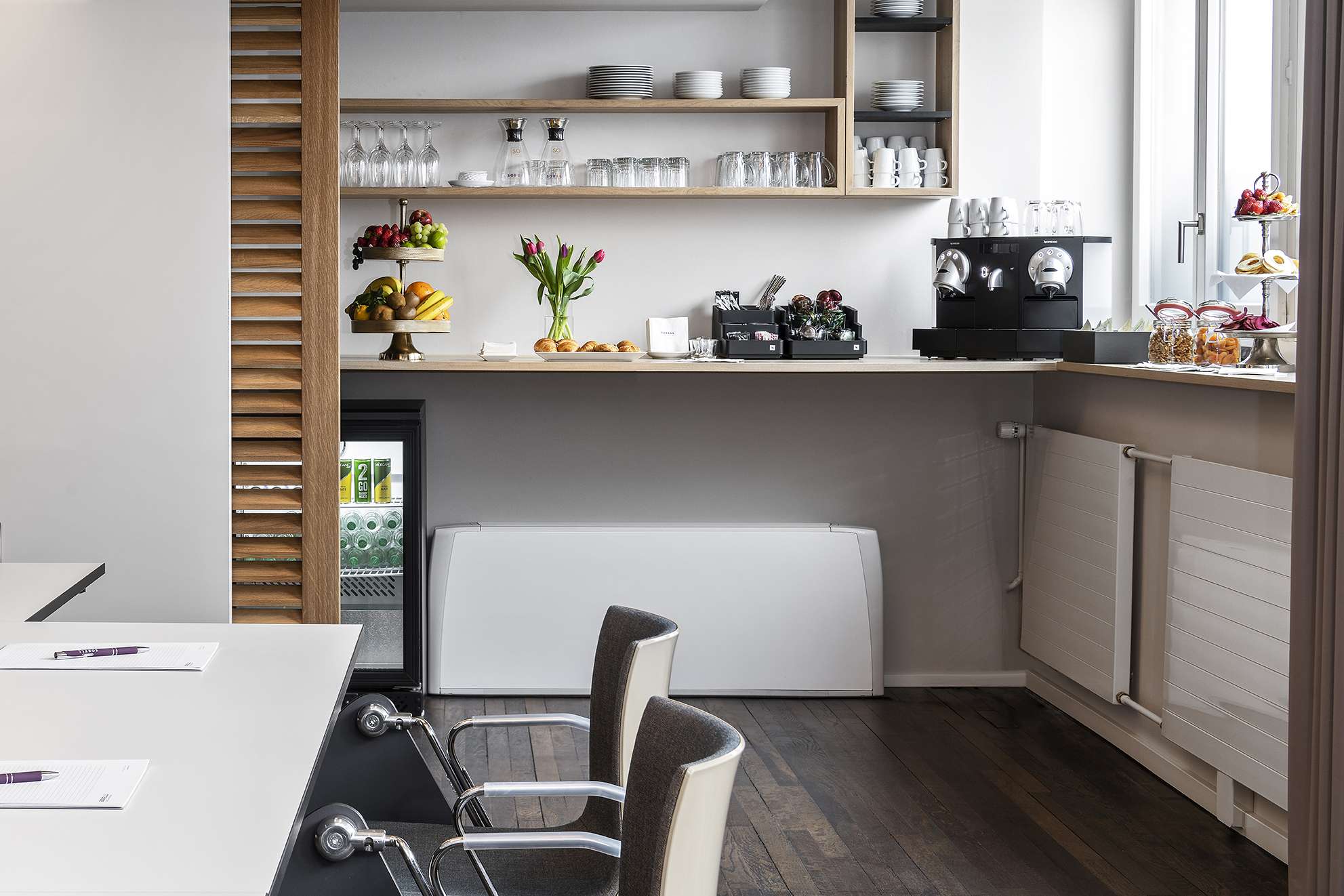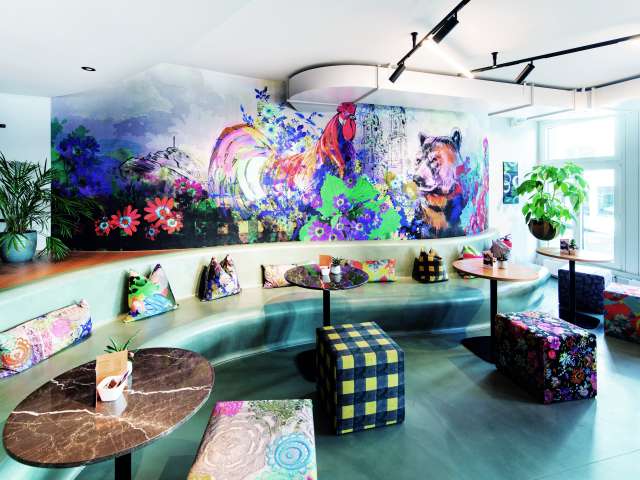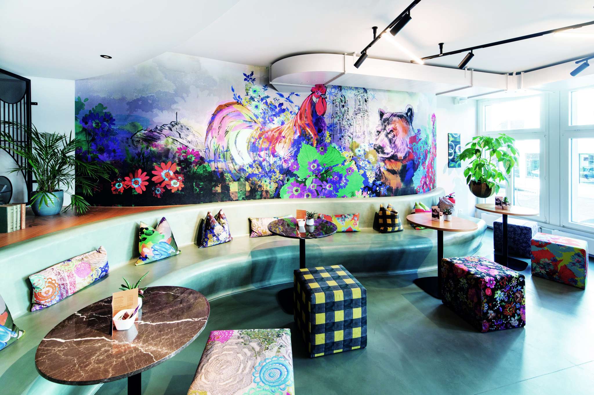 - Farbenfrohe Lounge mit für Snacks und Apéro