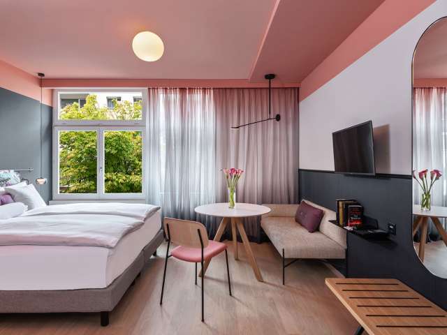 Das 4* Boutique-Hotel mit Fashion-Feeling öffnete seine Türen im Juli 2020. Im Herzen St.Gallens erwartet die Gäste eine wohnlich eingerichtete Lobby und 32 Zimmer. Der Kreativ-Workshopraum ist ausgestattet mit magnetischen Wänden, Whiteboard-Stehtischen und abwechslungsreichen Sitzgelegenheiten. Kreativität und Ideenfindung werden gefördert und die Umgebung steigert die Aufmerksamkeit der Teilnehmer. Für Gruppenarbeiten kann die Lobby, das Wohnzimmer, mit seinen unterschiedlichen Sesseln, Stühlen und Bänken mitbenutzt werden. Die lokale Mode und Kunstszene sind Leitthemen für die Raumgestaltung und rundet das Erlebnis ab. Das liegt liegt hinter dem Bahnhof St.Gallen und mit öV bestens erreichbar.