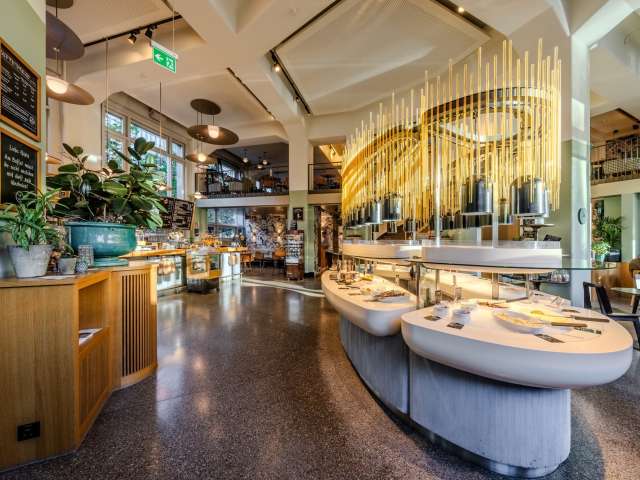 - Restaurant "tibits" mit vegetarisch-veganem Buffet im Erdgeschoss