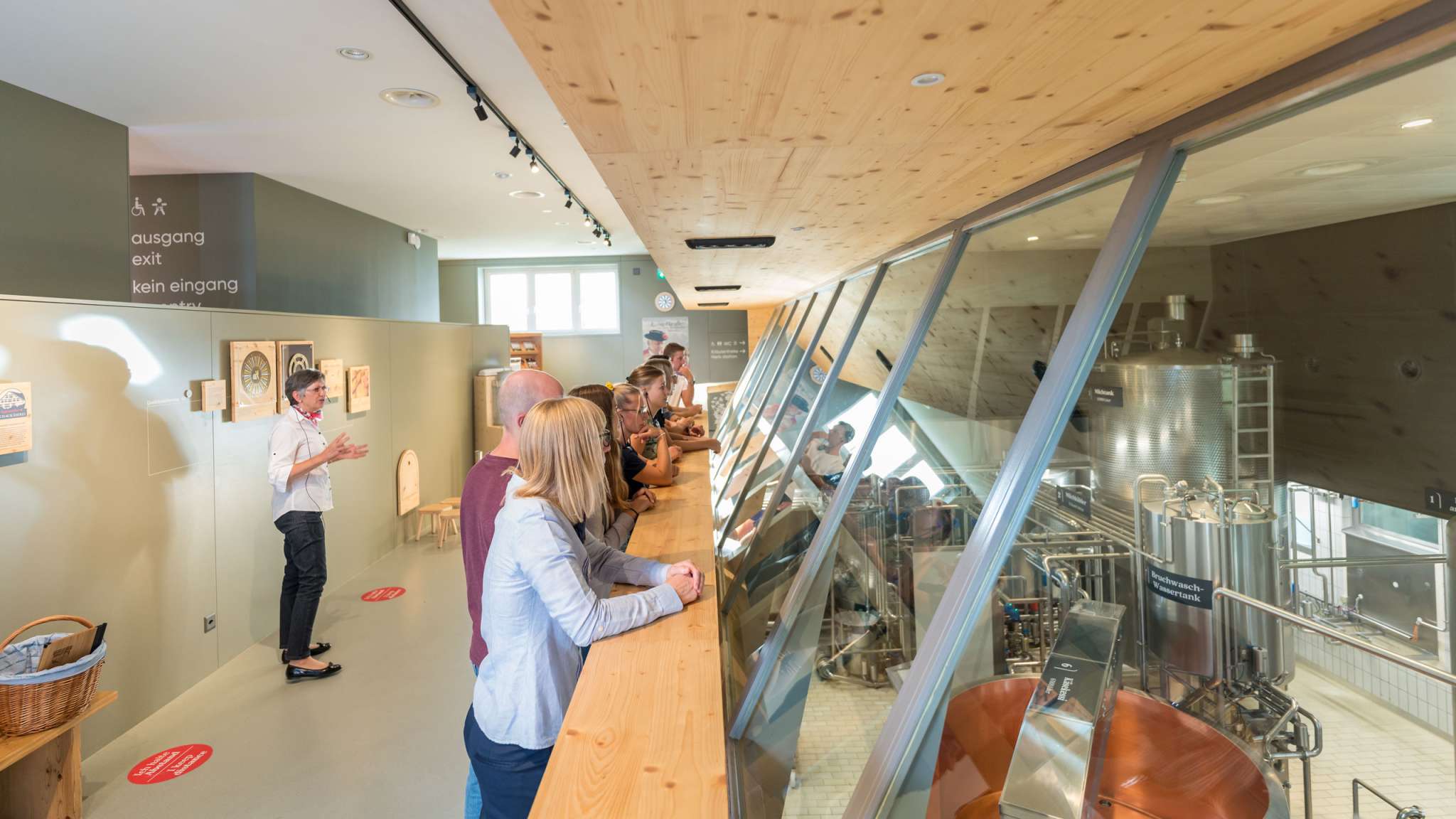 Wenn Sie genauer wissen möchten, wie das mit dem Appenzeller® Käse funktioniert, dann buchen Sie eine geführte Besichtigung. Eine Gastgeberin erklärt auf der Besuchergalerie wahlweise in Deutsch, Englisch, und Französisch die Finessen rund um die Produktion des würzigen Appenzeller® Käses. Eins ist jedoch sicher: Das Geheimnis der Kräutersulz verrät auch sie nicht.