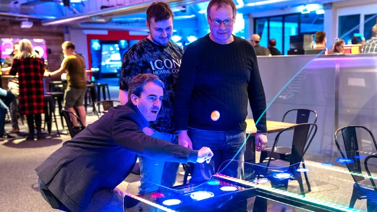 Die Indoor Freizeitanlage bietet auf 6000m2 innovative und hochmodernen Attraktionen. Spass, Action und Unterhaltung sind in der einzigartigen Anlage garantiert. Der Park steht aber nicht nur für Fun und Action und ein tolles Erlebnis für Jung und Alt, sondern trainiert und fördert gleichzeitig Teamerlebnisse und Durchhaltevermögen auf eine spielerische und spannende Art. Top Attraktionen Top Attraktionen wie die hochmoderne Kartbahn, der Driftpark mit einem kurvenreichen Parcours und die Welt der Cube-Challenges garantieren Spass pur. Hochwertigen, innovativen und realitätsnahen Spielräume mit neusten Technologien sorgen zudem für ein unvergessliches Spielerlebnis im Team. Herausfordernde Attraktionen wie AR-Darts (Augmented Reality), Jet-Pong, Pac-Man Battle Royale, Shuffleboard und interaktives Minigolf warten darauf, von den Besuchern gemeistert zu werden und Spiele wie Pixel Games, Pool Ball und Clip’n Climbing Kletterwand bieten Spass und Bewegung für alle und sorgen für körperlich aktive Unterhaltung. Die einzigartige Valo Arena ist ein interactiver «Mixed Reality Playground» und bietet mit einer Fläche von 60 m² ein unvergleichliches Eintauchen in verschiedene virtuelle Welten. Rundum versorgt Ein gemütliches Bistro mit Essen und Getränken steht für Pausen selbstverständlich ebenso zur Verfügung wie mehr als 400 Parkplätze. Den Park erreicht man zudem einfach mit den Öffentlichen Verkehrsmittel. Es stehen Schliessfächer zur Verfügung und es gelten höchste Sicherheitsstandards. Dauer: 2 oder 4 Stunden Teilnehmer: 2 bis 400 Personen