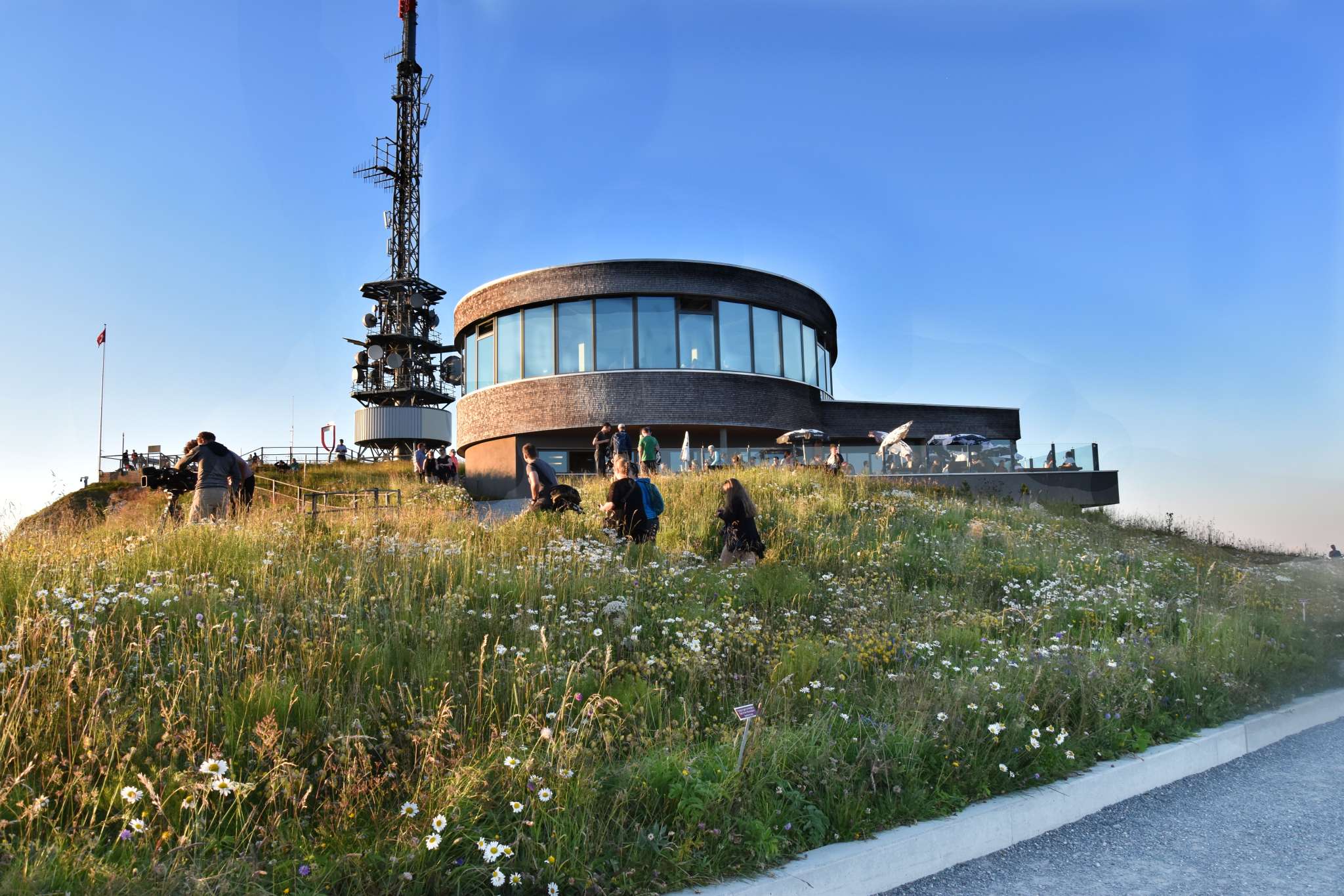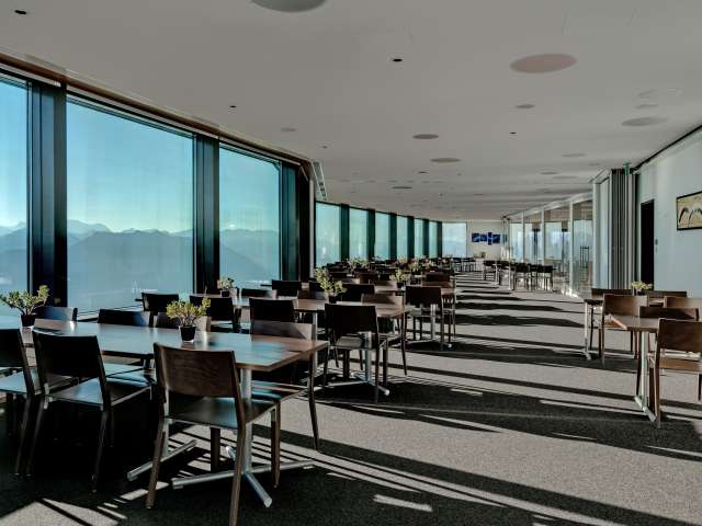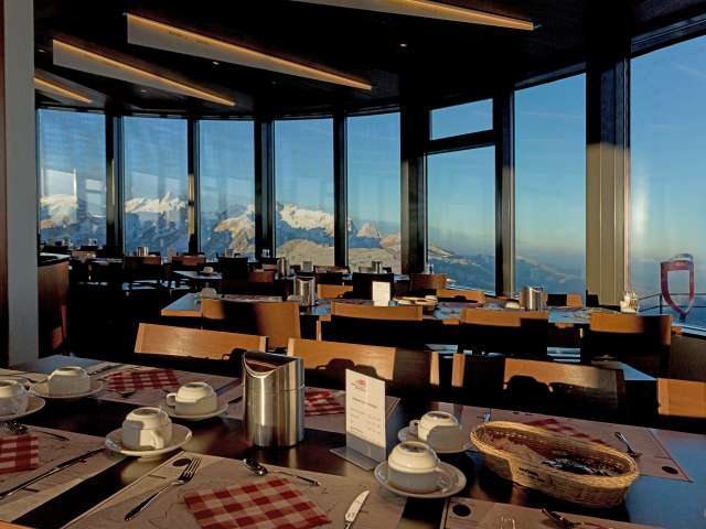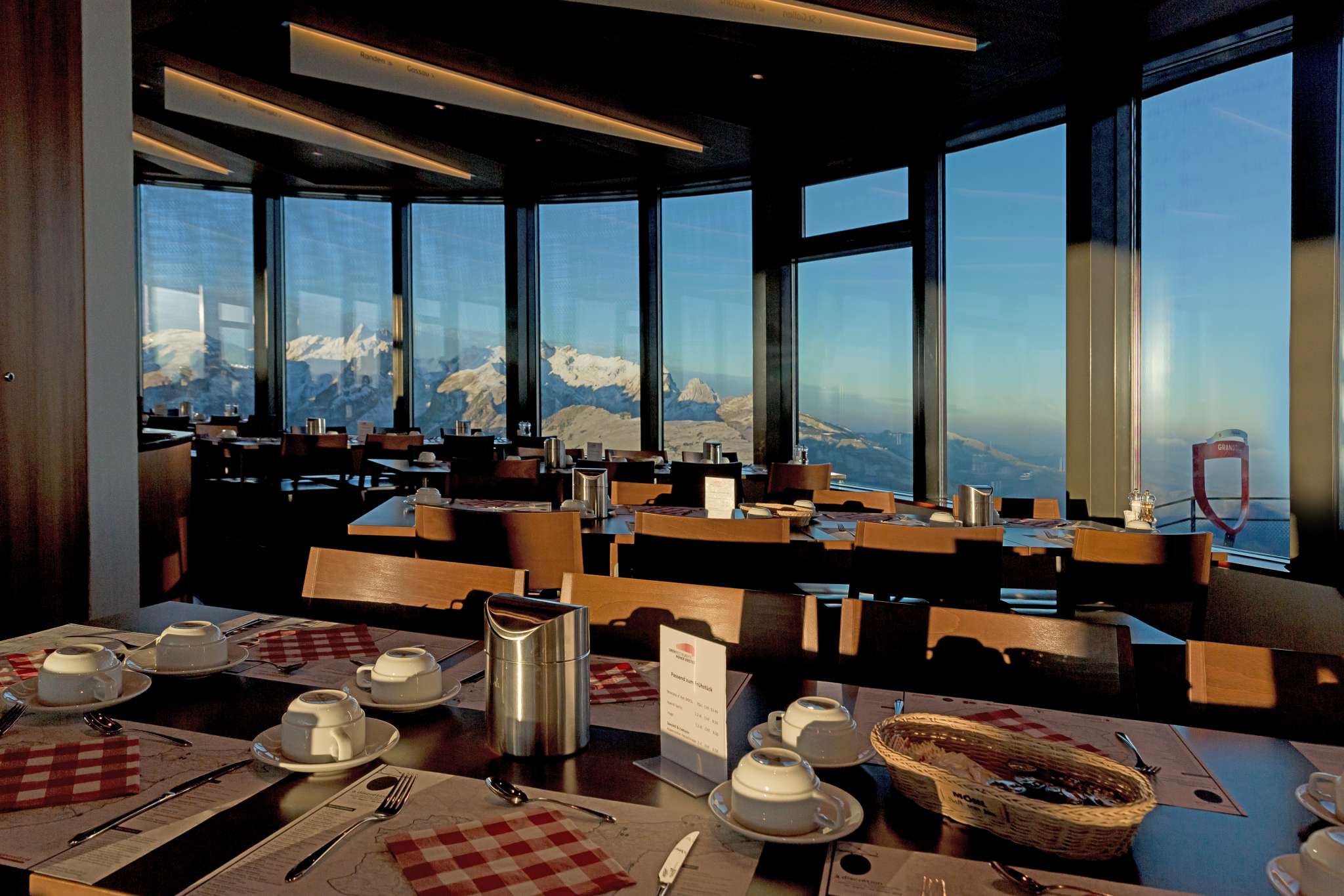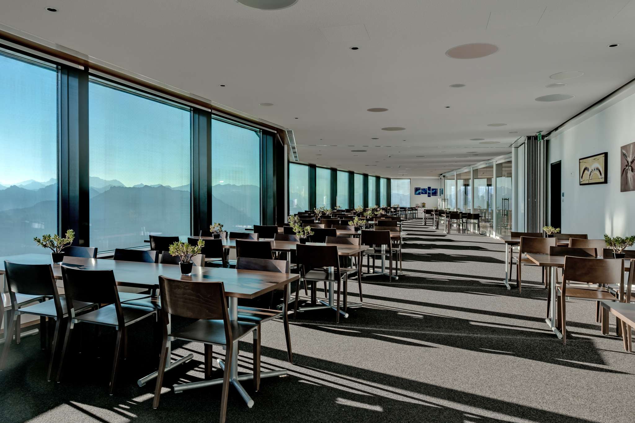 Ein Besuch im Drehrestaurant rundet das Erlebnis ab. Sei es während einem leckeren Essen oder einem feierlichen Apéro, die Aussicht auf dem Gipfel ist bestechend schön. Für Gruppen ab 20 Personen öffnet das Drehrestaurant exklusiv auch am Abend seine Türen.