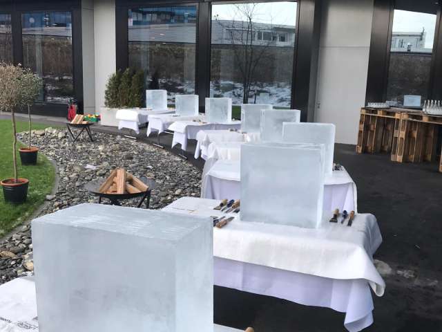 Lassen Sie sich von der ungeahnten Kreativität und dem Ideenreichtum Ihrer Mitarbeiter, Kollegen oder Kunden in Staunen versetzen. Egal ob Sie das Firmenlogo, eine Phantasiefigur oder das dem Meeting angelehnte Thema meisseln, das Ergebnis wird Sie beeindrucken. Gemeinsam wird über das Sujet beraten und das Kunstwerk zusammen aus dem rohen Eisblock gemeisselt. Gutes Teamwork und Kommunikation sind hier nötig, damit aus dem Eisblock am Schluss die geplante Eisskulptur entsteht. Bei diesem Workshop wird das «zwischenmenschliche Eis» schnell schmelzen.