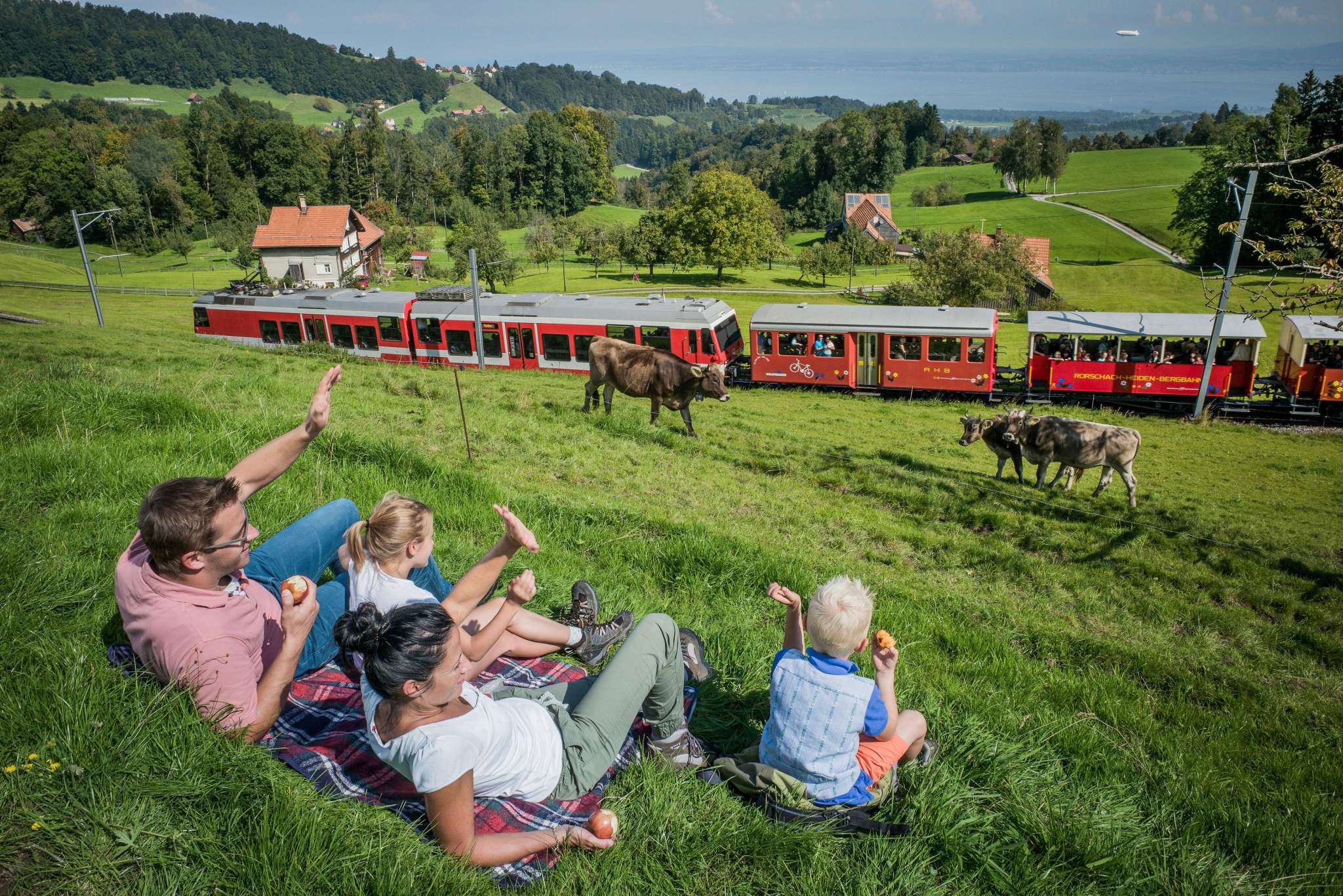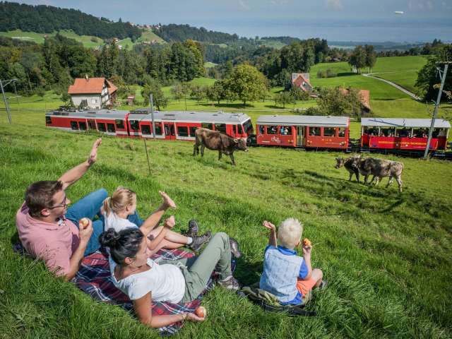 Mit der Bergbahn der Appenzeller Bahnen fahren Sie von Rorschach am Bodensee hinauf ins schöne Biedermeierdorf Heiden. Einmalig auf dieser Fahrt ist der unvergessliche Ausblick auf den Bodensee. In Heiden schlemmen Sie ein Drei-Gang-Menü im Restaurant Linde Heiden, bevor es mit dem Postauto zur Aussichtsterrasse Walzenhausen geht. Steil runter führt die Zahnradbahn nach Rheineck, wo das Erlebnis mit einer genussvollen Schifffahrt auf dem Alten Rhein nach Rorschach Hafen endet.