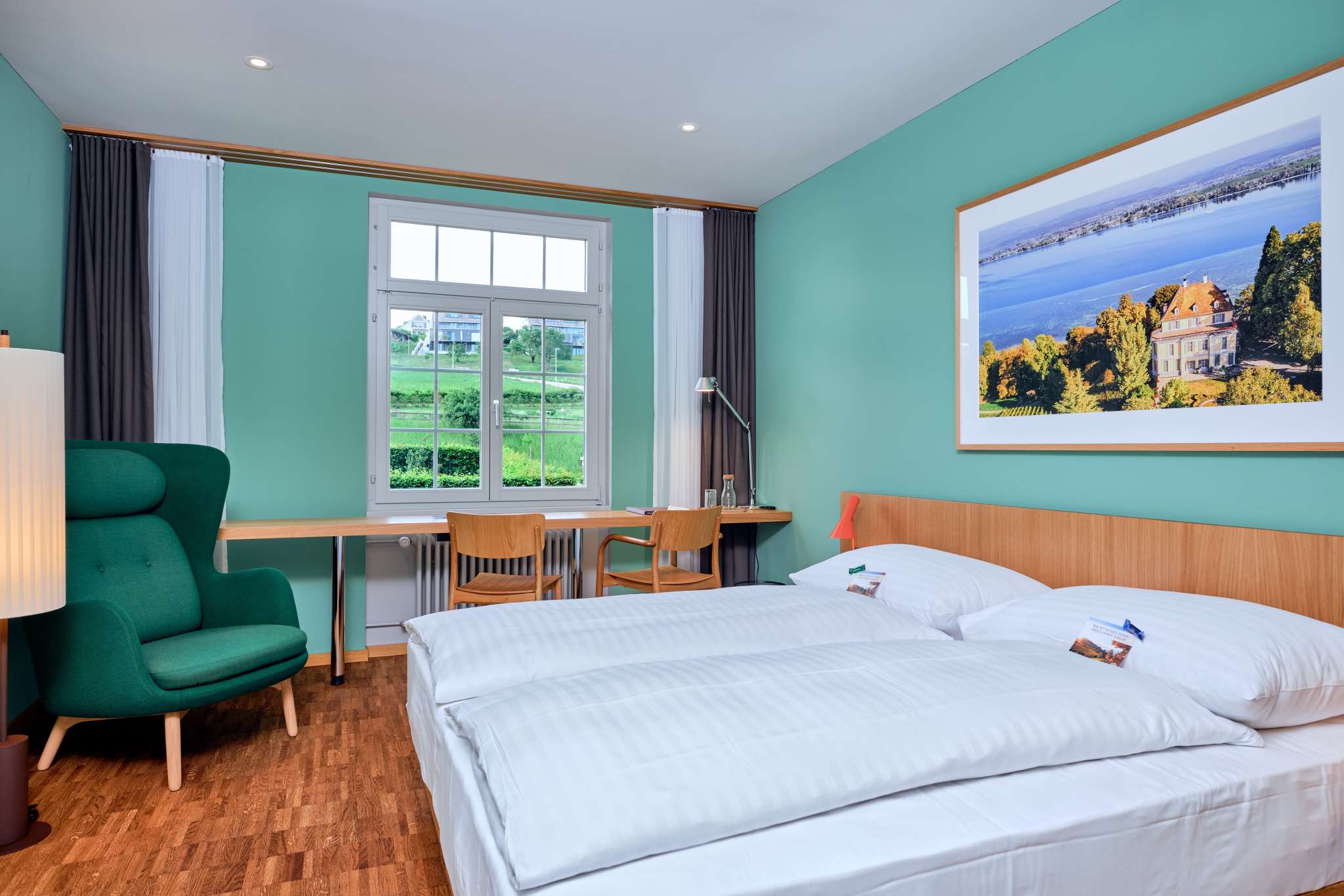 Der Blick über den See bis zur Vulkanlandschaft des Hegaus, lichtdurchflutete, moderne Seminarräume und stilvoll renovierte Hotelzimmer schaffen ideale Voraussetzungen für erfolgreiche Veranstaltungen. Das Hotel Arenenberg ist ideal gelegen. Es ist nur 15 Minuten von Kreuzlingen entfernt und sowohl mit dem Auto als auch mit öffentlichen Verkehrsmitteln bequem erreichbar.