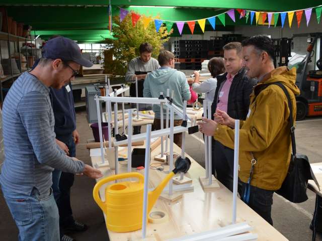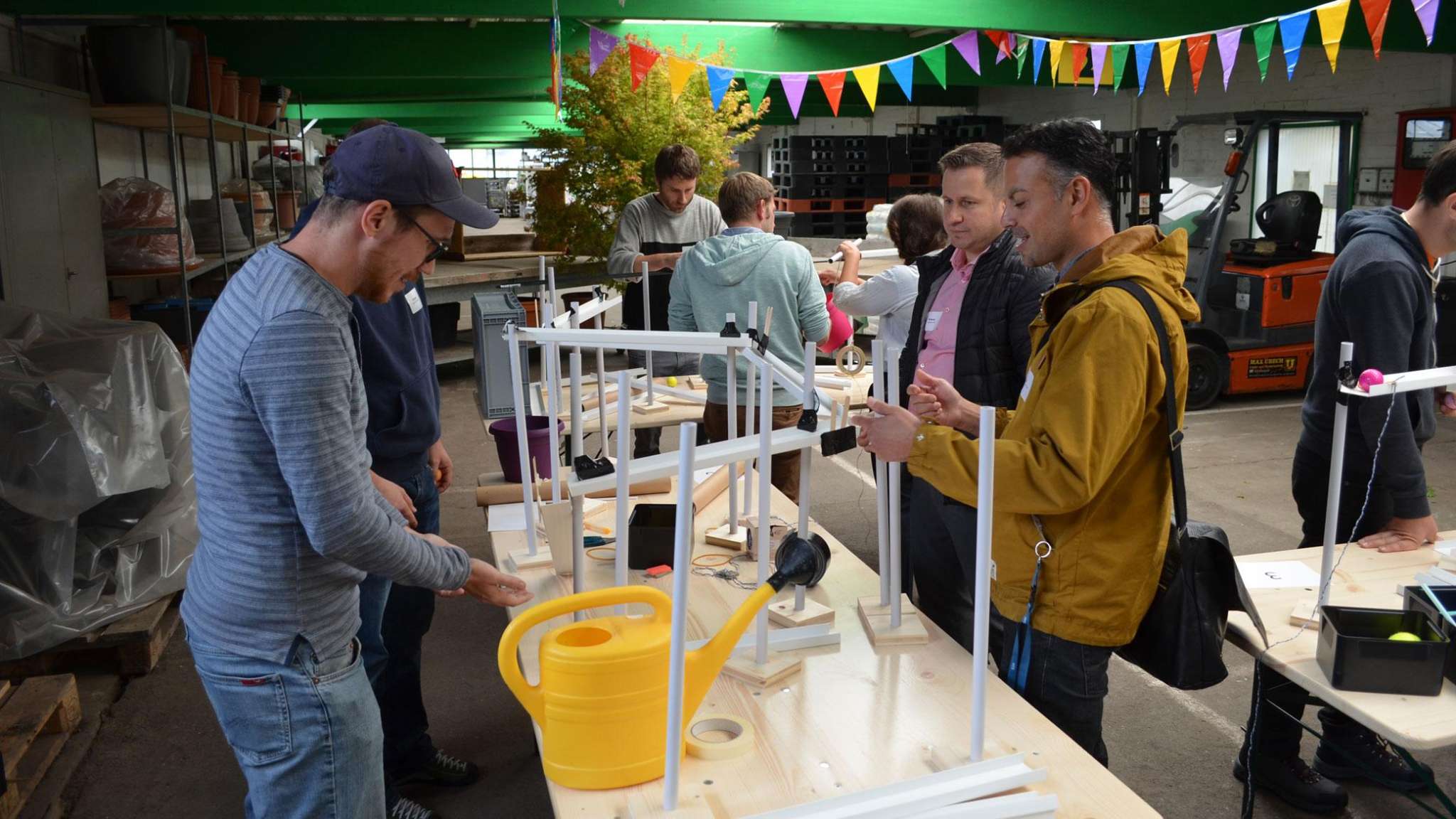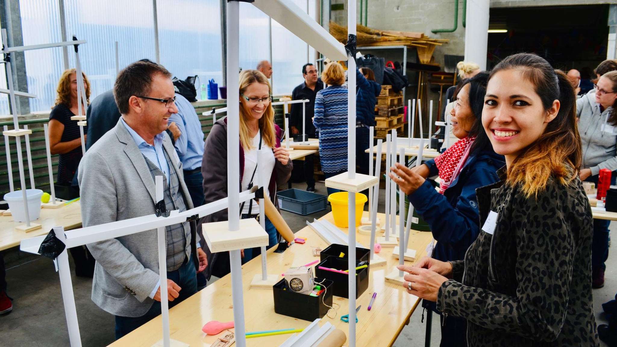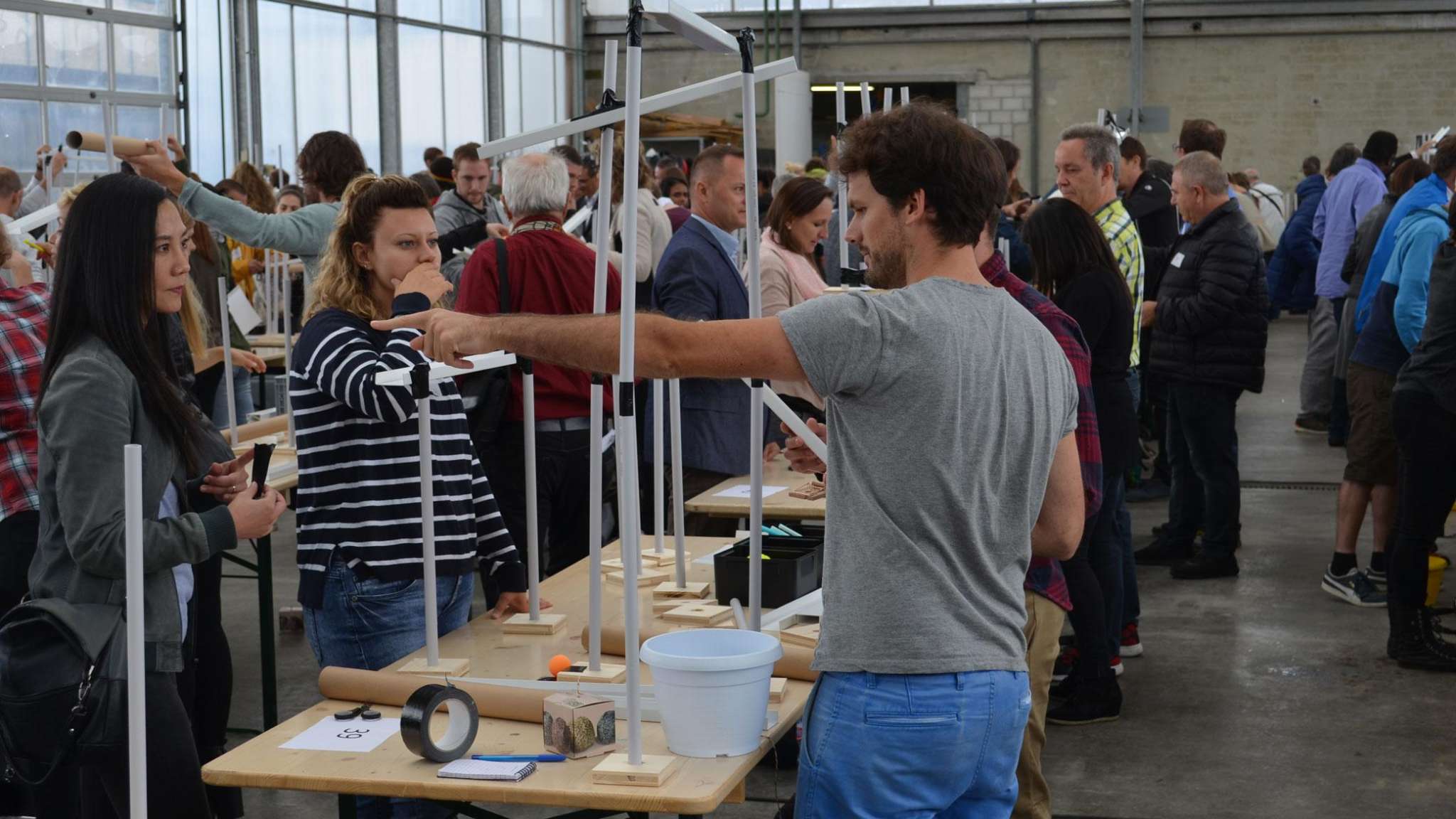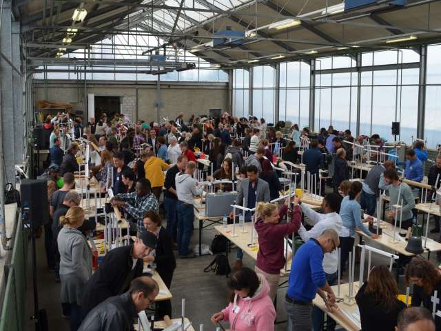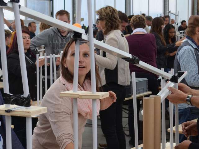Die Kugel rollt und rollt und rollt. Aus einfachen Materialien bauen Teams à 4 Personen einen Abschnitt der Kugelbahn. Anschliessend werden mit den angrenzenden Gruppen die Schnittstellen gebaut. So entsteht aus vielen Einzelteilen ein grosses Ganzes. Die riesige Kugelbahn wird bei grösseren Gruppen über 100 Meter lang! Alle Gruppen erhalten eine identische Materialkiste. Kaum zu glauben, wie unterschiedlich die einzelnen Abschnitte am Ende aussehen. Der Kreativität sind dabei keine Grenzen gesetzt. Der Kugelbahnworkshop eignet sich auch für Grossgruppen-Events. Begeisterung ist garantiert.