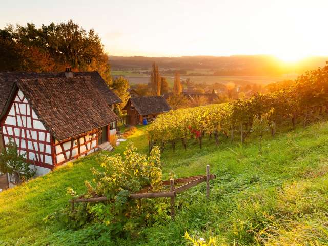 Etwa drei Stunden ist man auf dem neun Kilometer langen Wanderweg unterwegs. Entlang der Reben blickt man dabei von den Südhängen des Ottenbergs hinab ins Thurtal. Auf verschiedenen Informationstafeln können auch Weinkenner beim Wandern noch Neues dazu lernen. Ungewöhnliche Rastplätze laden zur Pause ein: Die Kunstinstallationen entlang der Route wurden extra für den Weinweg angefertigt.