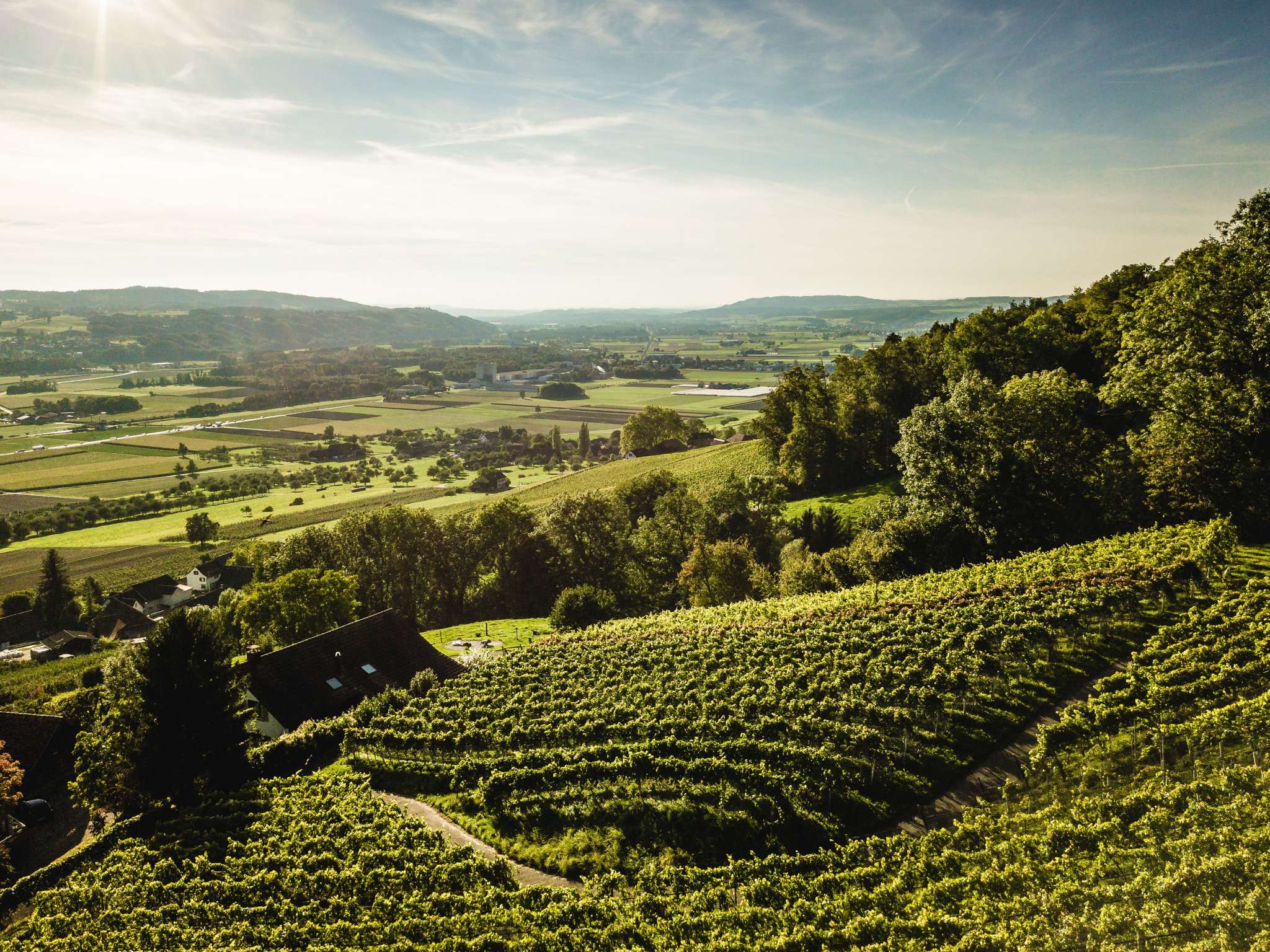Die Route des Weinwegs führt vom Bahnhof Weinfelden über Ottoberg und Boltshausen wieder zurück nach Weinfelden.