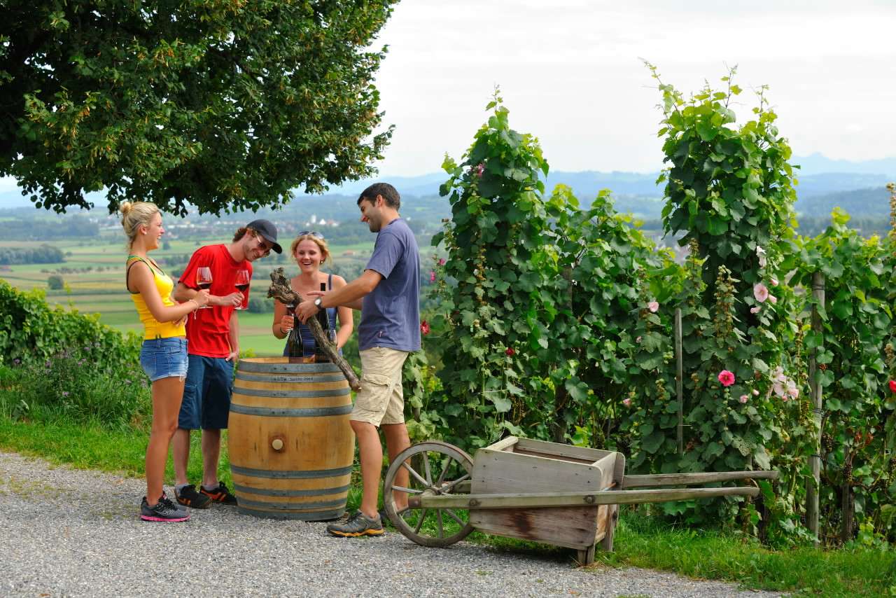 Der Weingenuss selbst kommt ebenfalls nicht zu kurz: Am Bahnhofschalter der SBB in Weinfelden erhalten Ausflügler einen Weinweg-Rucksack mit Proviant und Glas sowie einen Code zum Weinsafe. Wer den Weinweg nicht auf eigene Faust begehen möchte, so lässt sich ein Führer und vor Ort Degustationen individuell organisieren.